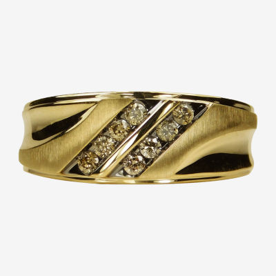 Mens 1 3 Ct T W Genuine Champagne Diamond 10k Yellow Gold Ring Color Yellow Jcpenney